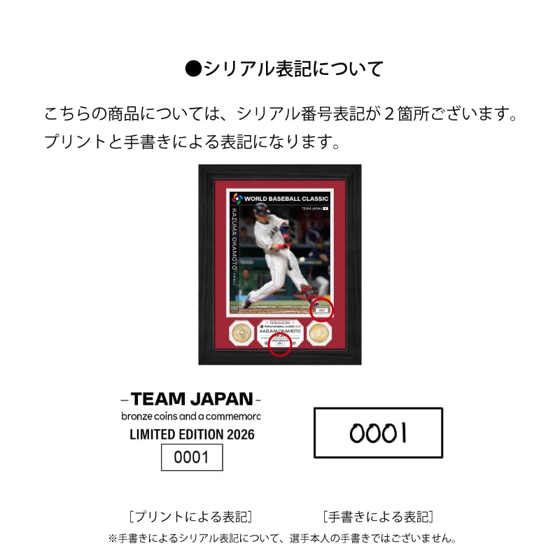 世界限定2,026個のシリアルナンバー入り(手書きとプリントによる表記)。すべてWORLD BASEBALL CLASSIC 公認ホログラムシール付きの正規品です。