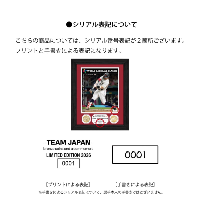 世界限定2,026個のシリアルナンバー入り(手書きとプリントによる表記)。すべてWORLD BASEBALL CLASSIC 公認ホログラムシール付きの正規品です。