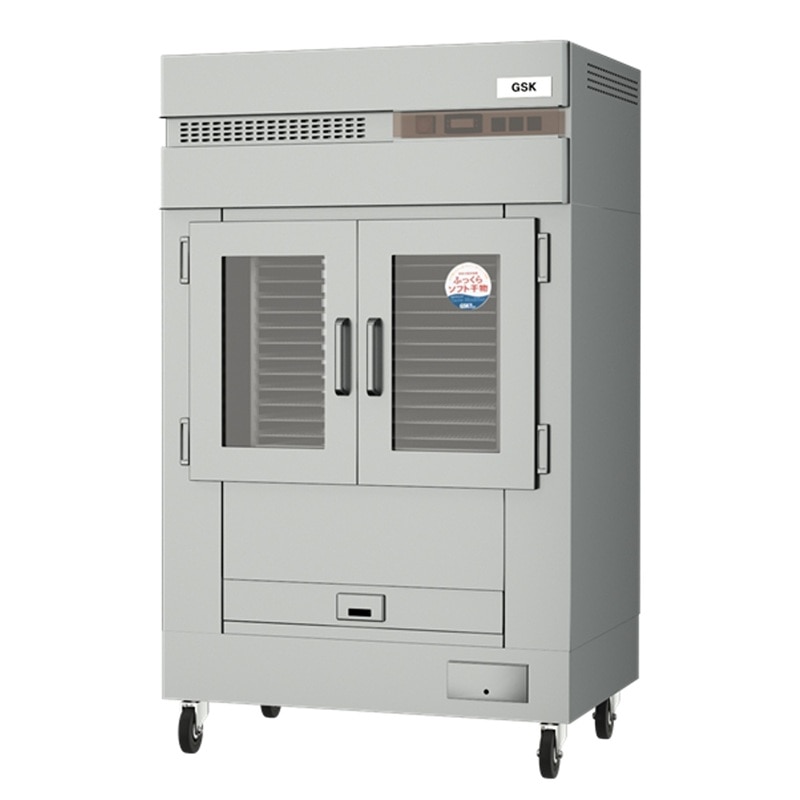 独自技術で庫内の風を上下左右の4方向に循環させることと、特殊なツイン除湿方式を採用することで、原料の表面をまんべんなく風が当たるため、原料内部の中心部からムラなく効率よく水分を抜くことが可能になっております。そのため、従来の機械乾燥の干物とくらべて短時間で、ふっくらやわらかなソフト干物(登録商標)が出来ます。
