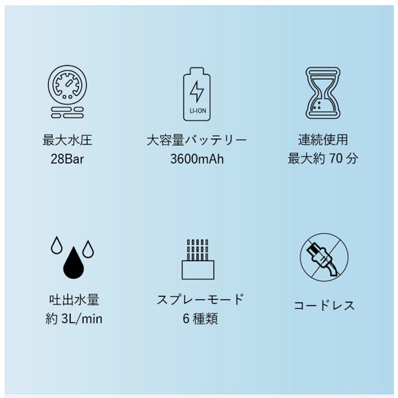 ・商品サイズ:約450×255×90mm (ノズル・バッテリーセット時)