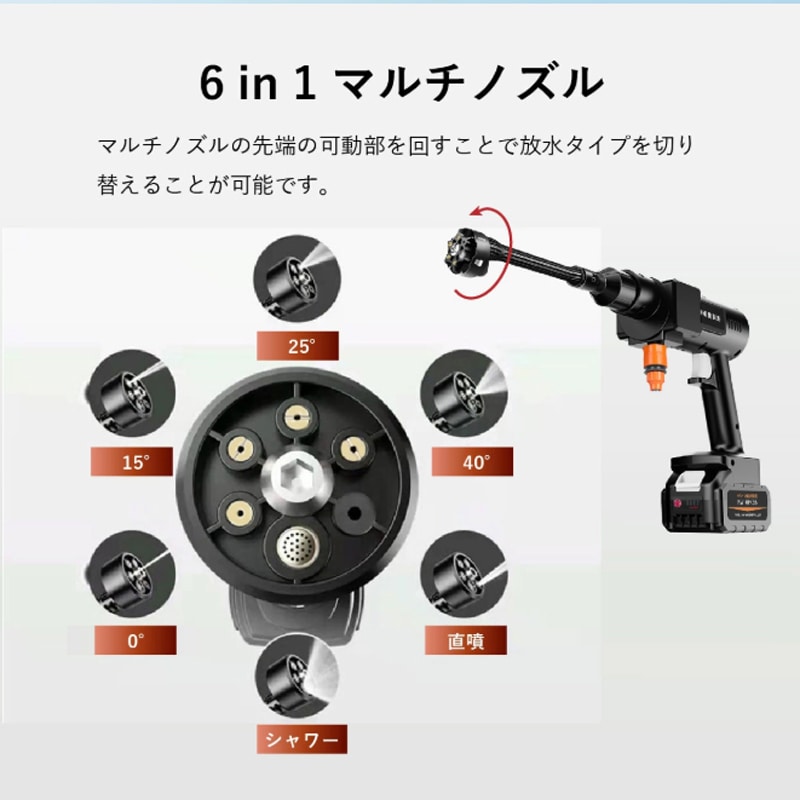 ●6in1マルチノズル付きで6つのスプレーモードを切り替えることが可能です。