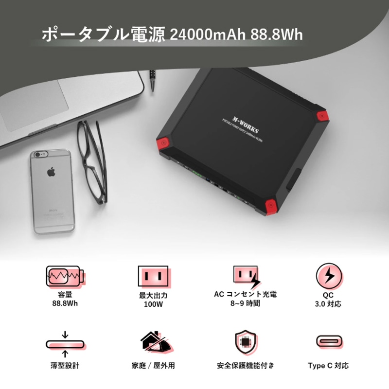 【大容量&高い互換性】24000mAhのバッテリー容量を備えて、キャンプ、車中泊、アウトドアから防災まで幅広くご使用いただけます。