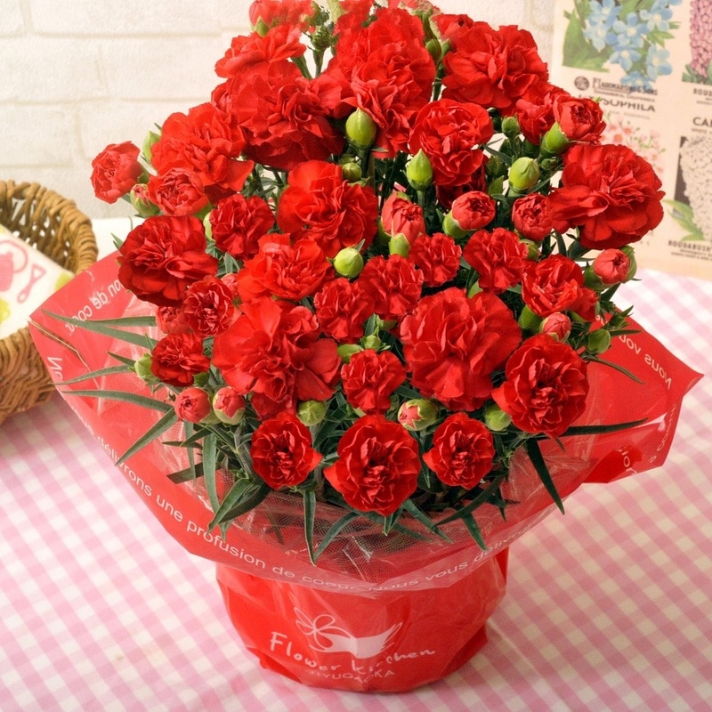<母の日>カーネーション 5号鉢 赤(品種おまかせ)
