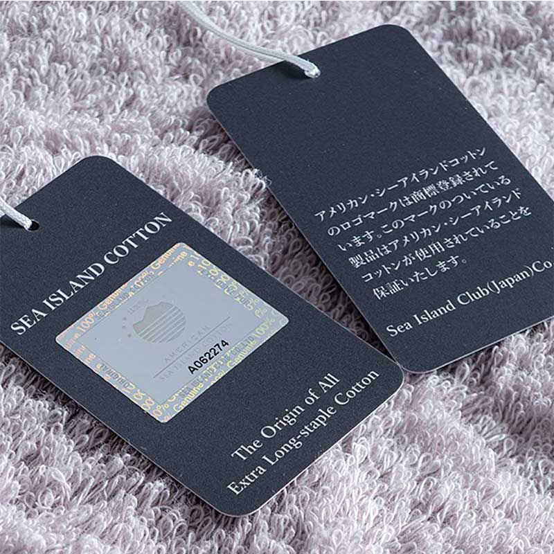今治タオル工業組合が定める品質基準をクリアしたタオルのみつけることができる「今治タオルブランドネーム」と、ひとつひとつ大切に作られた証である「sara-laシリアルナンバー」を添えてお届けします。