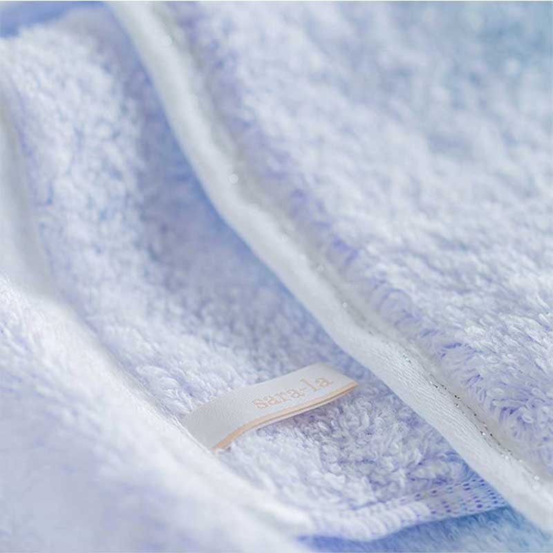 今治タオル工業組合が定める品質基準をクリアしたタオルのみつけることができる「今治タオルブランドネーム」と、ひとつひとつ大切に作られた証である「sara-laシリアルナンバー」を添えてお届けします。