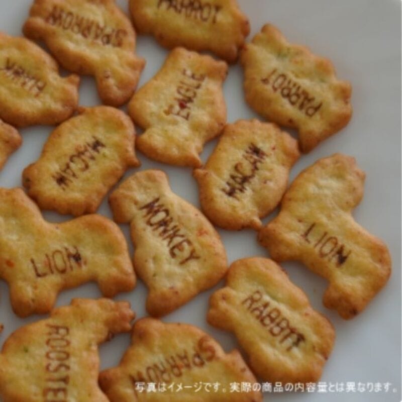 ・原材料名:小麦粉(国内製造)、植物油脂、砂糖、ショートニング、マーガリン、食物繊維、にんじん風味フレーク、ほうれん草風味フレーク、トマト風味フレーク、食塩、チーズ、野菜・果実ミックスジュース(野菜(にんじん、小松菜、ケール、ブロッコリー、ピーマン、ほうれん草、アスパラガス、赤じそ、だいこん、はくさい、セロリ、メキャベツ(プチヴェール)、紫キャベツ、ビート、たまねぎ、レタス、キャベツ、なす、パセリ、クレソン、かぼちゃ)、果実(りんご、オレンジ、レモン))、たまねぎパウダー、DHA含有魚油、ブイヨン風味パウダー、たまねぎ加工品、イースト/膨脹剤、炭酸Ca、着色料(カロチノイド、紅麹、フラボノイド、クチナシ)、ソルビトール、香料、(一部に小麦・乳成分・大豆・オレンジ・りんごを含む)