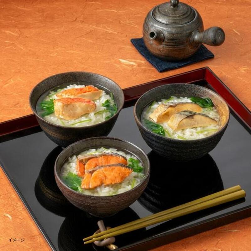 ウェットタイプ(生仕立て)で食べ応えのある本格茶漬です。抹茶のほのかな香りと鰹だしの濃厚な味わいをバランスよく合わせたお茶漬の素をかけてご賞味ください。冷水でも美味しくお召し上がりいただけるセットです。