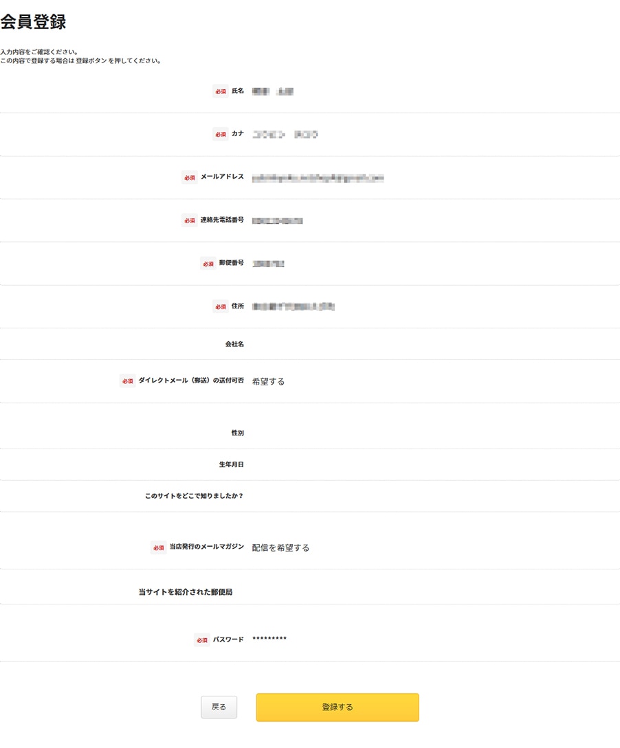 - 確認画面から、入力内容にお間違いがないかご確認ください。お間違いないようでしたら「登録する」ボタンをクリックしてください。