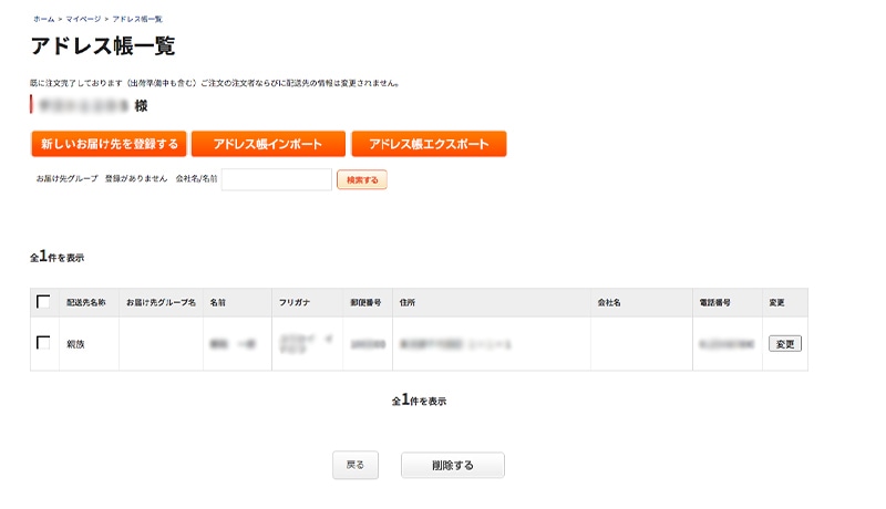頻繁に贈りものを送る方や、住所録をお持ちの方は大変便利な機能です。