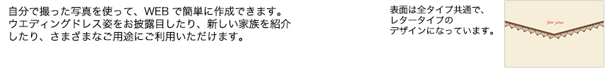 - ・お客様の作成した通りに印刷いたしますので写真の表示位置やメッセージの誤入力等にご注意ください。