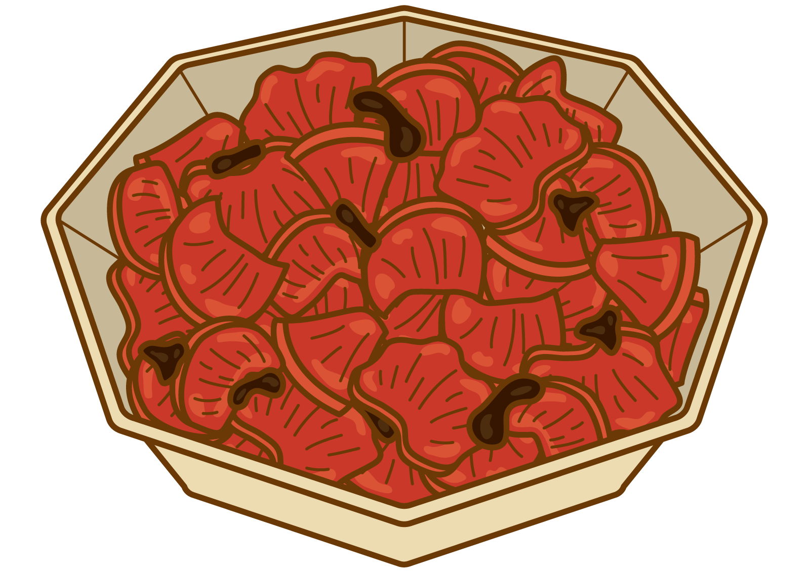 福神漬が初めてカレーに添えられたのは1902年(明治35)年頃、外国航路の客船の食堂だとか(諸説あり)。この頃、カレーにはインドや東南アジアで添えられていた「チャツネ」が付け合わせとして添えられていましたが、それを切らせていたそうです。そこで、料理人がチャツネの代わりに福神漬を使ってみたところとても評判がよく、乗船が船旅で出会ったこの組み合わせを自宅に持ち帰り、次第に家庭でも実践されるようになったのです。この過程で、福神漬は日本のカレー文化に欠かせない存在となりました。それが後に広まり、今やカレーの付け合わせの定番となっているのですね。