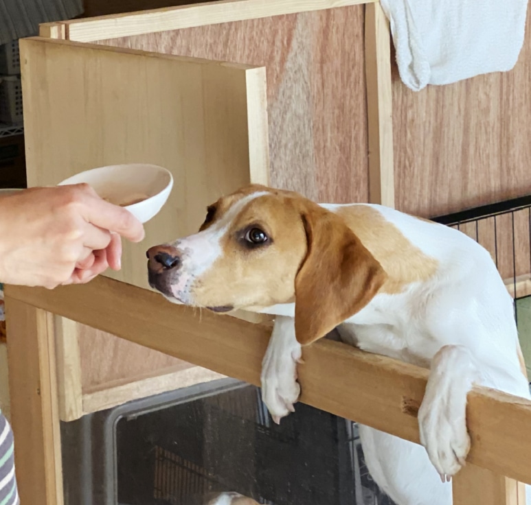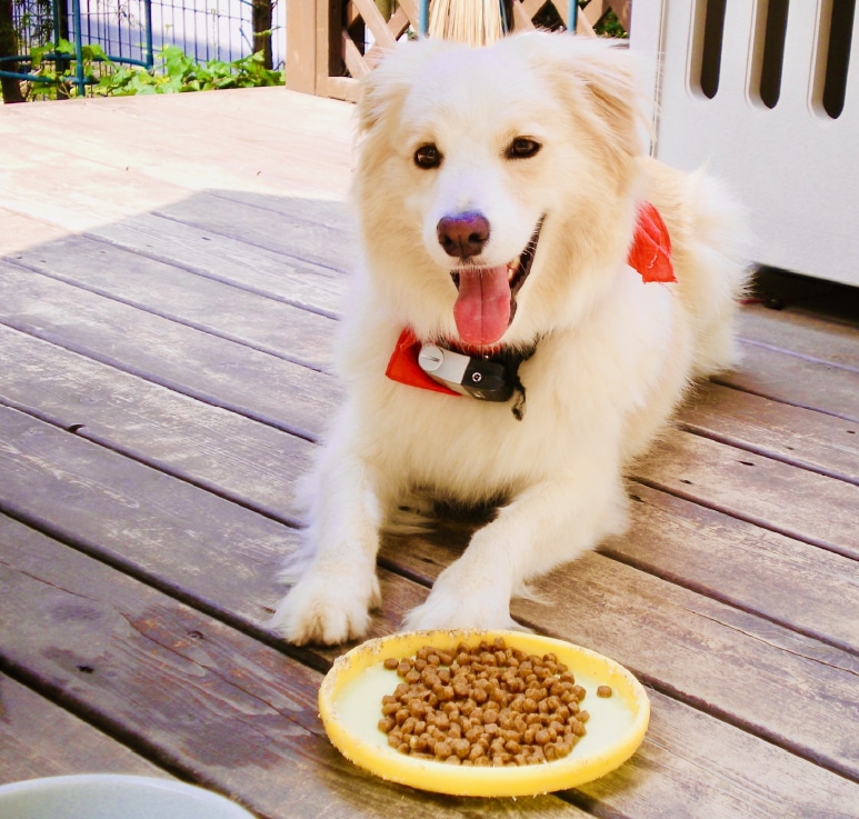 間食とは、いわゆるおやつのことです。お腹を満たすためではなく、ご褒美や嗜好品として、普段の食事とは別に少量を与えるものです。例えば、トレーニングで以前教えたことができたときなどにご褒美として与えると、犬が喜ぶだけでなく、意欲も高まります。
