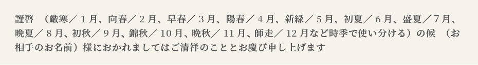 「拝啓」で始めた場合は必ず「敬具」で、「謹啓」の場合は「敬白」「謹白」で締めるようにしましょう。