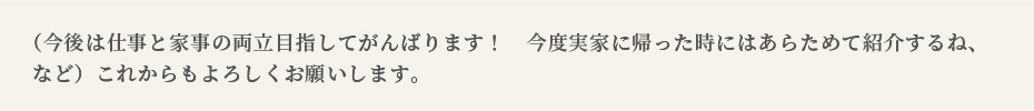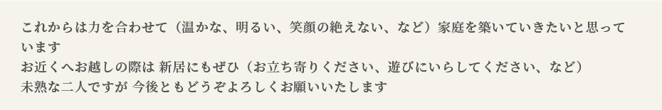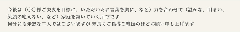 これからのことをただ「お願い」するのでなく、自分たちの結婚に対する心構えも示しましょう。お相手を立てる一言を添えられればなおよいでしょう。
