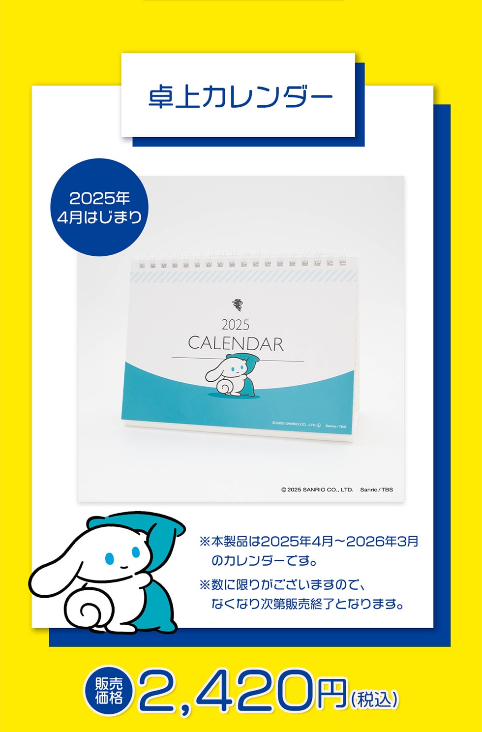 卓上カレンダー2025年4月はじまり※本製品は2025年4月〜2026年3月のカレンダーです。※数に限りがございますので、なくなり次第販売終了となります。販売価格2,420円(税込)
