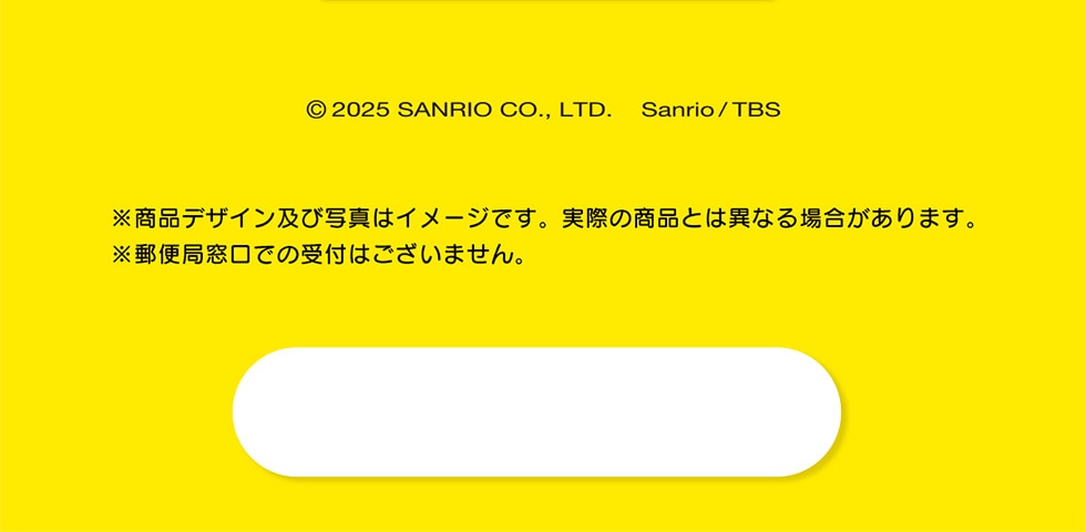 ©2025SANRIOCO.,LTD.Sanrio/TBS※商品デザイン及び写真はイメージです。実際の商品とは異なる場合があります。※郵便局窓口での受付はございません。