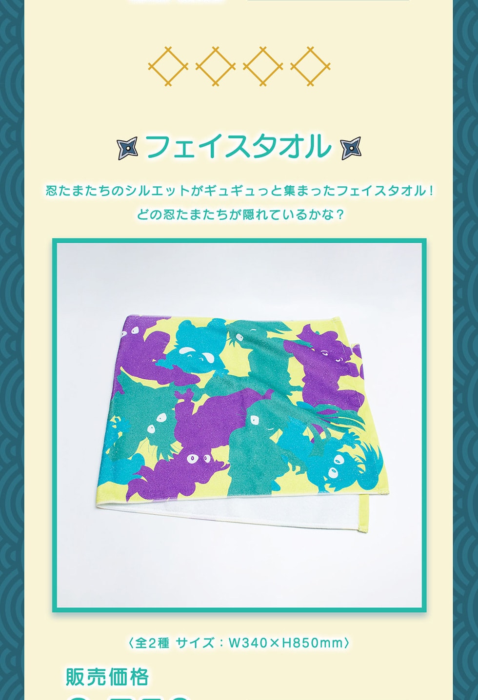 ★フェイスタオル★忍たまたちのシルエットがギュギュっと集まったフェイスタオル!どの忍たまたちが隠れているかな?<全2種 サイズ: W340×H850mm>