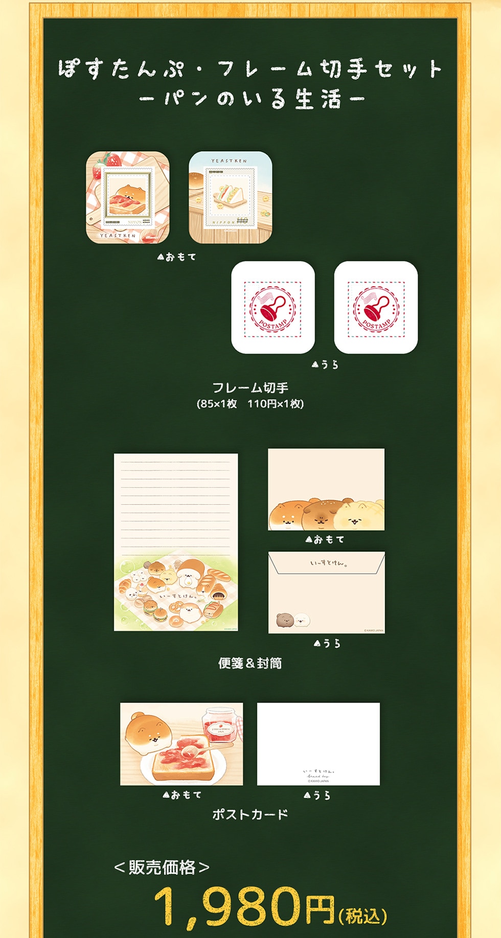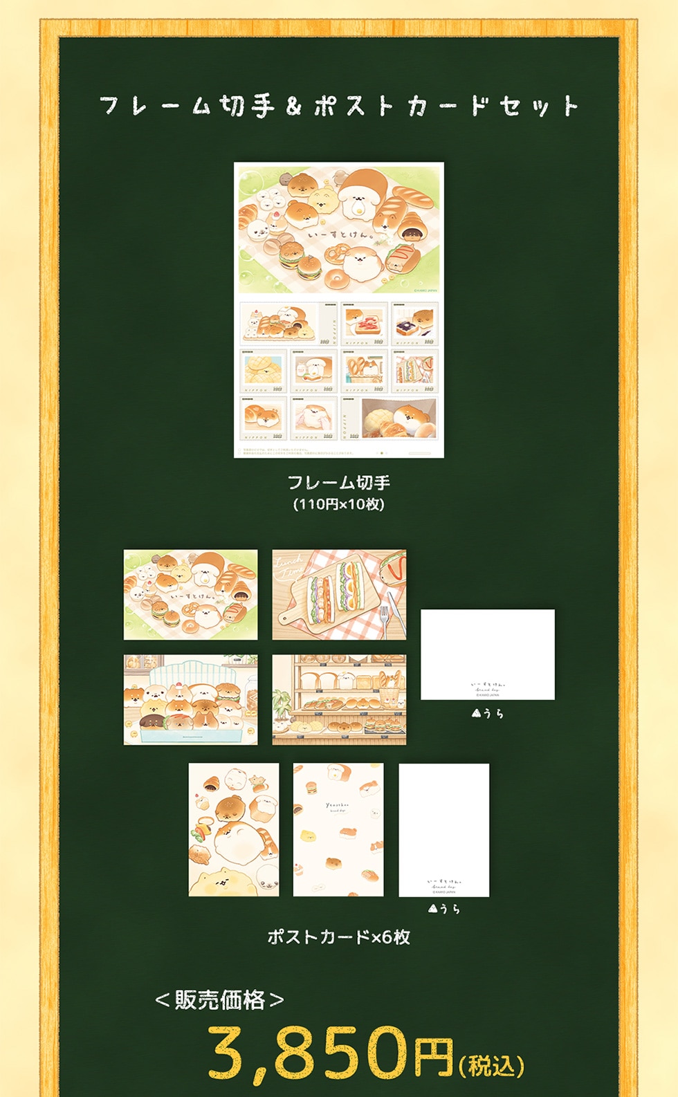 ぽすたんぷフレーム切手セット パンのいる生活 フレーム切手(85x1枚110円×1枚)便箋&封筒ポストカード<販売価格>1,980円(税込)