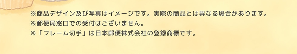 ※商品デザイン及び写真はイメージです。 実際の商品とは異なる場合があります。 ※郵便局窓口での受付はございません。※「フレーム切手」は日本郵便株式会社の登録商標です。